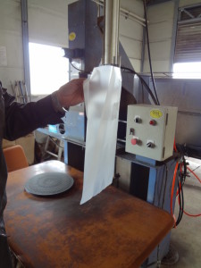 ⑥途中で水分に浸からないように袋を横倒しにします。水分はしいたけの排出物のようなものだそうです。
